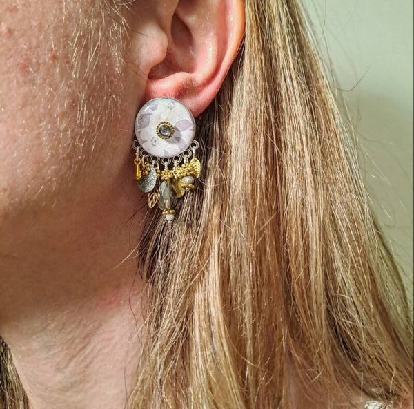 Boucles d'oeille Violet "Prune", Or et Argent (léopard)